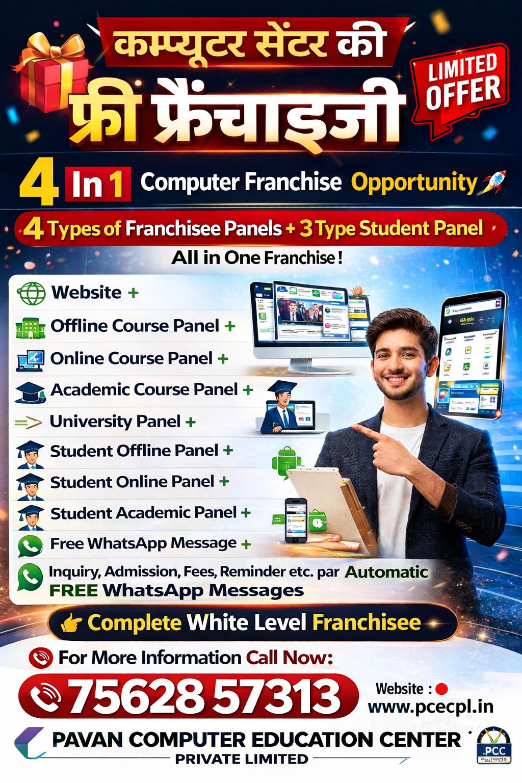 4) ऑफलाइन, ऑनलाइन, ऐकडेमिक 3 तरह का पैनल सिंगल फ्रेंचाइजी में